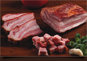 O bacon Casa Velha é elaborado a partir da barriga do suíno, onde é pendurada em varas para o processo de defumação. Ele pode ser consumido das mais diversas formas, picado em cubinhos nas feijoadas, em saladas, massas, ou ao seu gosto, use sua imaginação. |